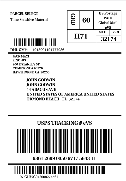 跟踪轨迹说明:第一条信息:预报信息发送,第二条信息:仓库出货扫描,第三条信息:美国当地扫描